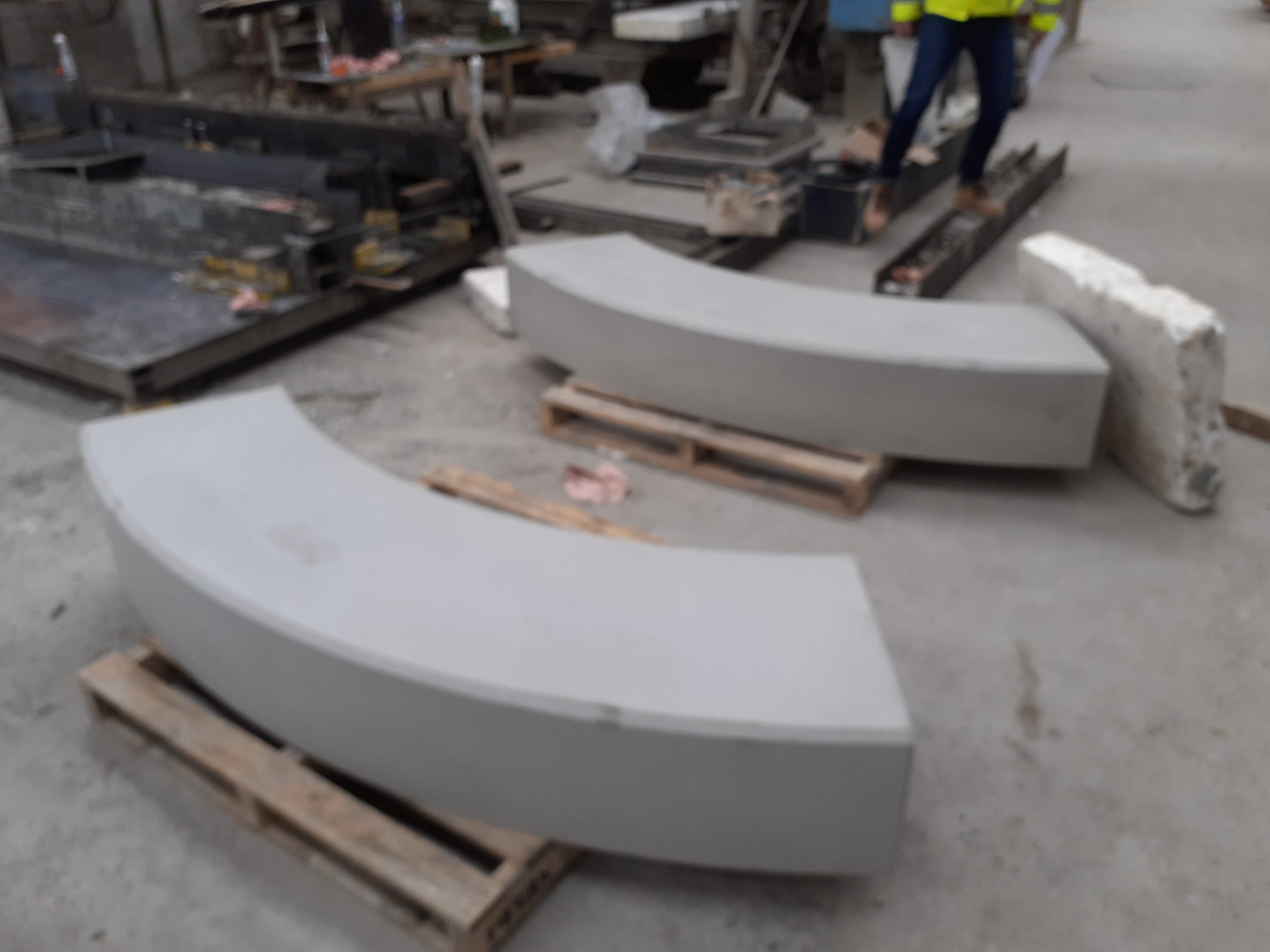Marche béton matrice bois avec nez de marche arrondi