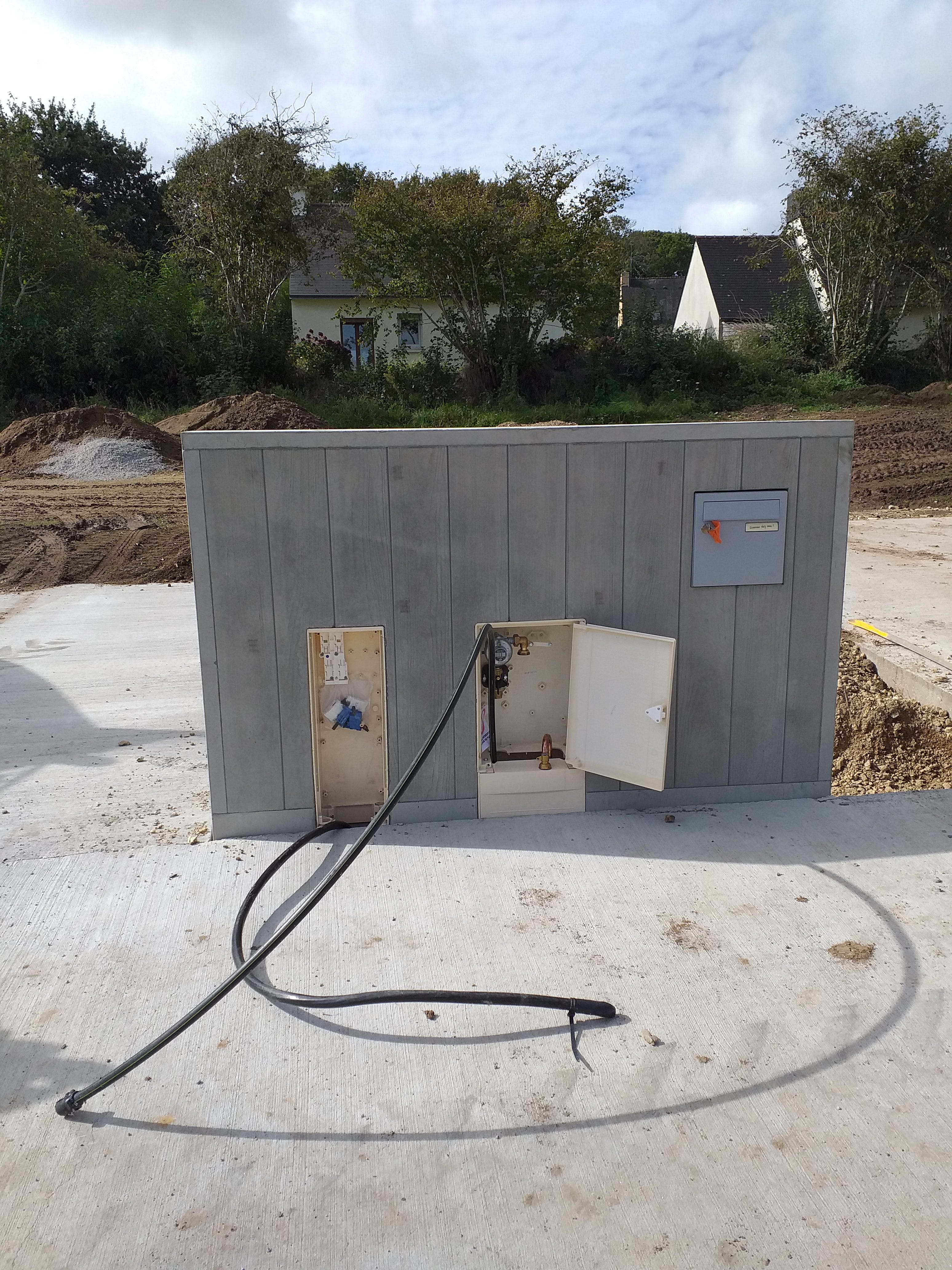 Le Muret technique de Urvoy Prefa a été développé pour répondre aux contraintes récurrentes générées par les coffrets Electriques, le gaz et la boite aux lettres. Les fonctions techniques sont préservées grâce à une porte qui permet l’accès aux différents coffrets.